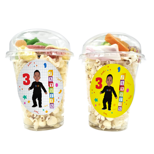 Gepersonaliseerde ABC 123 snoep en popcorn bekers