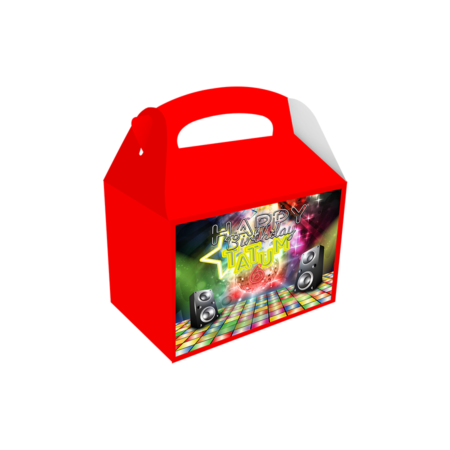 De leukste en lekkerste traktatie deel je uit in een 100% gepersonaliseerd Disco kant-en-klare happy meal traktatie uitdeel doos. Wordt geleverd in verschillende effen normale- of pastelkleuren passend bij het thema.