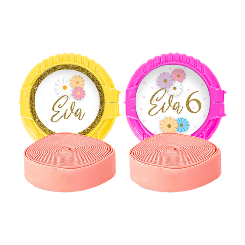 Op zoek naar een leuke, speelse en betaalbare traktatie om uit te delen op school of tijdens een feestje? Onze gepersonaliseerde ronde kauwgomrollen (ook wel bubblegum rolls genoemd) zijn de perfecte keuze! Deze vrolijke traktatie heeft een doorsnede van ca. 5,5 cm, komt in verschillende kleuren en is ideaal voor kinderen die dol zijn op iets lekkers én opvallends.