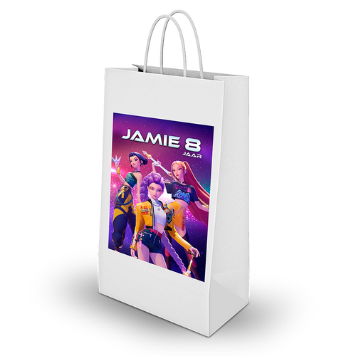 Of je nu kiest voor gepersonaliseerde chipszakjes, uitdeelzakjes, stickers, t-shirts of andere traktaties, alles sluit perfect aan bij het populaire KPop Demon Hunters thema. Deze feestartikelen zijn ideaal voor kinderen die houden van muziek, anime, en fantasy in één. De traktaties zijn bovendien geschikt als kant-en-klare traktatie om uit te delen op school, en vormen een leuke én betaalbare verrassing.