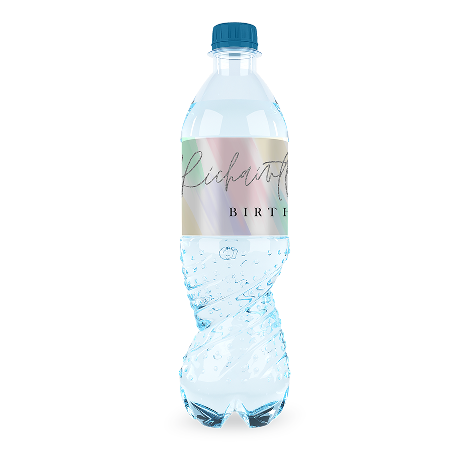 Versier jouw eigen (water)flesjes met gepersonaliseerde Pastel Silver labels of etiketten en maak je feestje hierdoor nog unieker.