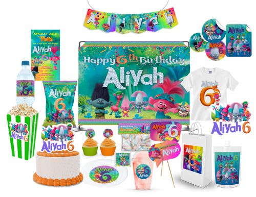 Collectie: Gepersonaliseerde Trolls Feestartikelen, Versiering en Traktatie