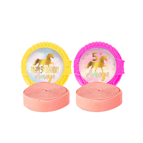 Gepersonaliseerde Golden Unicorn ronde kauwgom rollen
